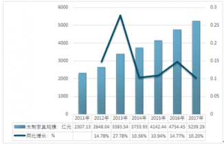 2011-2017年中國木制家具行業(yè)市場規(guī)模及增速 |