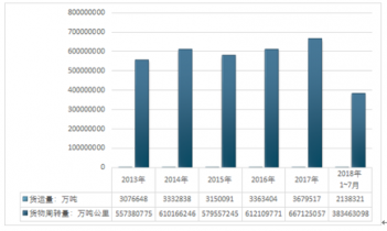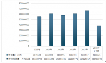 2013年~2019年7月中國公路貨運(yùn)量及貨運(yùn)周轉(zhuǎn)量走勢圖