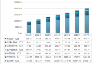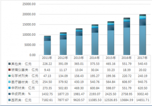 2011-2017年中國七大類醫(yī)藥商品市場規(guī)模 |