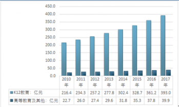 2017年我國(guó)K12教師培訓(xùn)市場(chǎng)規(guī)模為393.0億元,市場(chǎng)規(guī)模較上年同期增長(zhǎng)8.80%;2017年我國(guó)高等教育及其他教師培訓(xùn)市場(chǎng)規(guī)模為39.9億元,規(guī)模較上年同期增長(zhǎng)5.56%。