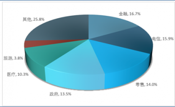 目前大數(shù)據(jù)行業(yè)中,金融、電信、零售領(lǐng)域投資較多,其中金融領(lǐng)域總體占比16.7%,電信領(lǐng)域15.9%,零售領(lǐng)域14.0%。