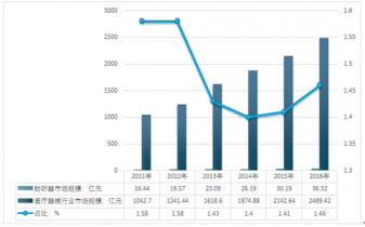 2011-2016年助聽(tīng)器、醫(yī)療器械行業(yè)市場(chǎng)規(guī)模 |