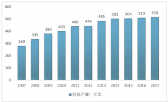 圖表 2007-2017年中國拉鏈產(chǎn)量走勢(shì)圖