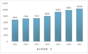 2011-2017年中國舉辦會(huì)展數(shù)量走勢(shì)圖