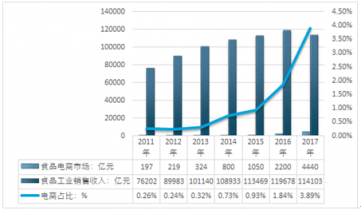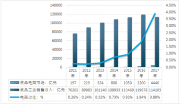 2017年,食品電商的規(guī)模達到4440億元, 2017年食品電商規(guī)模占全國食品工業(yè)銷售收入總額的3.89%。
