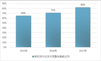 2017年我國移動支付使用率達到82%,較2015年的65%上升了17個百分點。我國移動支付的滲透率進一步提升。