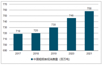 2017-2021中國粗鋼表觀消費量預(yù)測