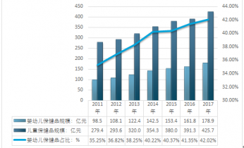 近幾年,國內(nèi)兒童保健品產(chǎn)品的需求一直保持快速增長。2017年國內(nèi)兒童保健品實現(xiàn)了425.7億元,其中嬰幼兒保健品規(guī)模約178.9億元,占比42.02%。