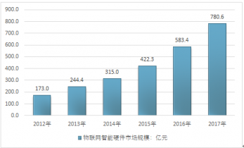 2012-2017年我國物聯(lián)網(wǎng)智能硬件市場(chǎng)規(guī)模走勢(shì)圖