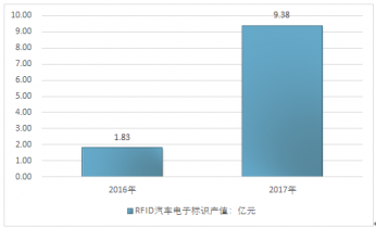 2016年,我國(guó)RFID汽車電子標(biāo)識(shí)行業(yè)產(chǎn)值為1.83億元,到2018年,我國(guó)RFID汽車電子標(biāo)識(shí)行業(yè)產(chǎn)值已經(jīng)達(dá)到9.38億元。