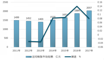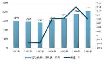 2011-2017年全球運(yùn)動鞋市場規(guī)模走勢圖 |
