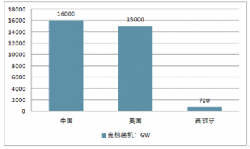 中國光熱裝機潛力超過美國、西班牙(GW)