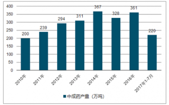 2010-2017年1-7月中國(guó)中成藥產(chǎn)量分析