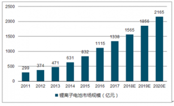 圖表:2016-2018年鋰離子電池行業(yè)市場規(guī)模分析