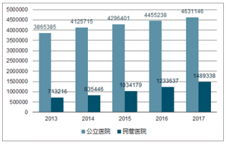 2013-2017年中國醫(yī)院床位數(shù)統(tǒng)計