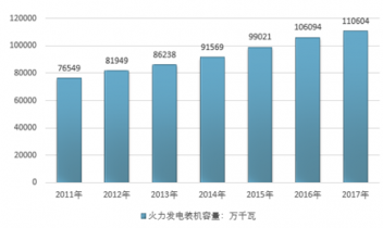 2011-2017年我國(guó)火力發(fā)電裝機(jī)容量走勢(shì)圖