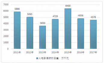 2011-2017年我國(guó)火力發(fā)電新增裝機(jī)容量