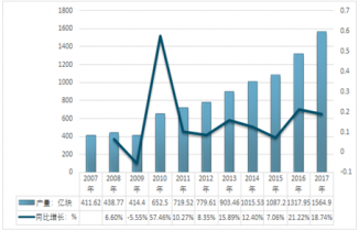 2007-2017年集成電路行業(yè)產(chǎn)量及其增長速度 |