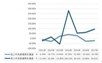 海上風(fēng)電新增裝機(jī)增速遠(yuǎn)超陸上風(fēng)電(單位:%) |