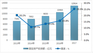2013-2017年電子信息行業(yè)固定資產(chǎn)投資額 |
