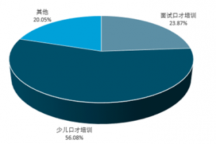 2017年我國面試口才培訓(xùn)行業(yè)規(guī)模占整體規(guī)模的23.87%,少兒口才培訓(xùn)占整體市場的56.08%。