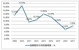 2009-2017年我國(guó)殯葬服務(wù)市場(chǎng)規(guī)模增速