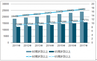 目前,中國已經(jīng)成為世界上老年人口最多的國家,據(jù)國家統(tǒng)計(jì)局最新數(shù)據(jù),2017年,60周歲及以上人口24090萬人,占總?cè)丝诘?7.3%,其中65周歲及以上人口15831萬人,占總?cè)丝诘?1.4%。當(dāng)一個國家或地區(qū)60歲以上老年人口占人口總數(shù)的10%,或65歲以上老年人口占人口總數(shù)的7%,即意味著這個國家或地區(qū)的人口處于老齡化社會。中國老年人口比例嚴(yán)重超標(biāo)。