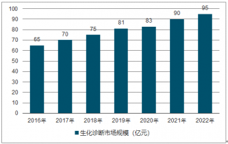 圖表:2016-2019年中國生化診斷試劑行業(yè)市場規(guī)模