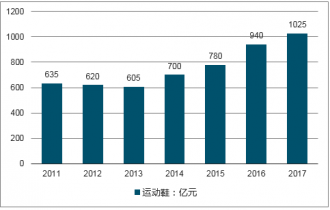 2011-2017年我國運動鞋市場規(guī)模走勢圖