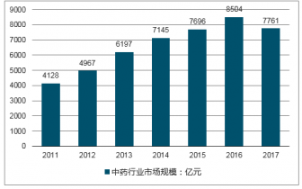 2011-2017年中藥行業(yè)市場規(guī)模(億元)