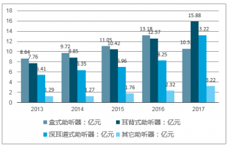2013-2017年中國不同類型助聽器市場規(guī)模對比