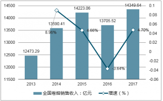 2013-2017年全國卷煙銷售收入及增速