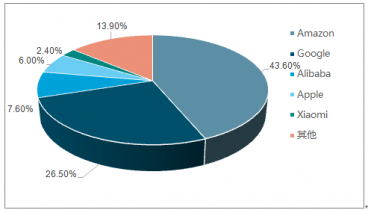 中國廠商阿里巴巴表現(xiàn)出色,天貓精靈第.一季度預(yù)計(jì)出貨量70萬臺,市場份額排名7.6%。