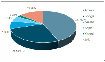 中國廠商阿里巴巴表現(xiàn)出色,天貓精靈第.一季度預(yù)計出貨量70萬臺,市場份額排名7.6%。