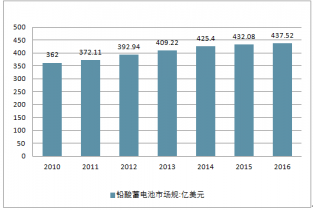 2010-2016 年全球鉛酸蓄電池市場規模