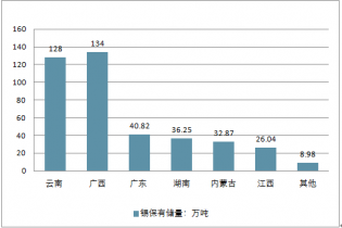 我國(guó)錫礦資源保有儲(chǔ)量分省市統(tǒng)計(jì)