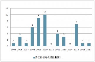 2005-2017年我國開工的核電機組數(shù)量統(tǒng)計