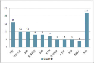 在2019年中國(guó)人工智能商業(yè)落地企業(yè)領(lǐng)域分布方面,主要集中在安防、語(yǔ)音交互、醫(yī)療行業(yè)。 ‘AI+安防’領(lǐng)域的企業(yè)共有16家;語(yǔ)音交互的企業(yè)有10家,‘AI+醫(yī)療’的企業(yè)數(shù)量為10家,其后分別為圖像識(shí)別、金融、SLAM、自動(dòng)駕駛、AI芯片、零售及機(jī)器人等領(lǐng)域。