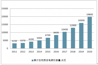 2011-2020年中國累計(jì)生物質(zhì)發(fā)電裝機(jī)容量預(yù)測