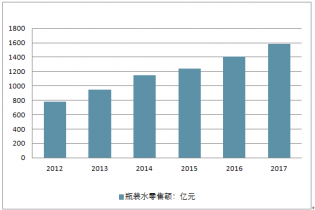 2012-2017年中國瓶裝水零售額走勢