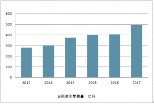 2012-2017年中國瓶裝水零售量走勢