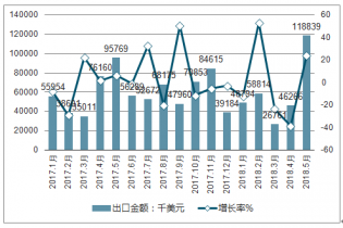 2017-2019年各月中國煙花、爆竹出口金額及增長率走勢(shì)