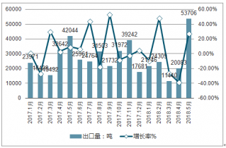 2017-2019年各月中國煙花、爆竹出口數(shù)量及增長率走勢(shì)