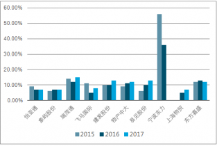 2015-2017年中國物流供應(yīng)鏈行業(yè)各企業(yè)近三年凈資產(chǎn)收益率(凈利潤/平均凈資產(chǎn))