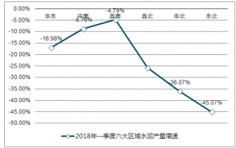 2018年一季度六大區(qū)域水泥產量增速情況