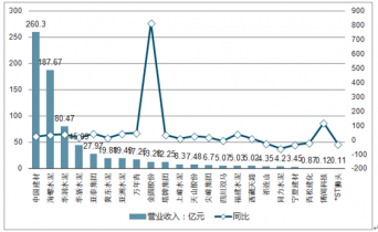 部分水泥行業(yè)上市公司2018年一季度營(yíng)業(yè)收入及同比增長(zhǎng)走勢(shì)