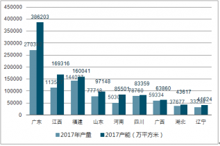 2017 年各省份瓷磚產(chǎn)能及產(chǎn)量統(tǒng)計(jì)
