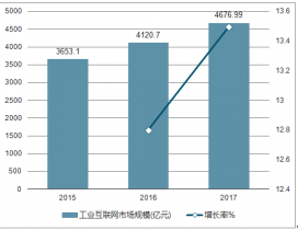 2017年中國(guó)工業(yè)互聯(lián)網(wǎng)市場(chǎng)規(guī)模達(dá)到4676.99億元,增長(zhǎng)率為13.5。