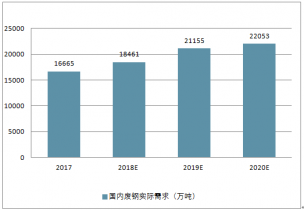 預(yù)計 2018~2020 年我國廢鋼消費量將分別達(dá) 18461、 21155、 22053 萬噸