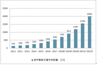 2011-2022年中國(guó)城市智能交通市場(chǎng)規(guī)模變化情況(單位:億元)